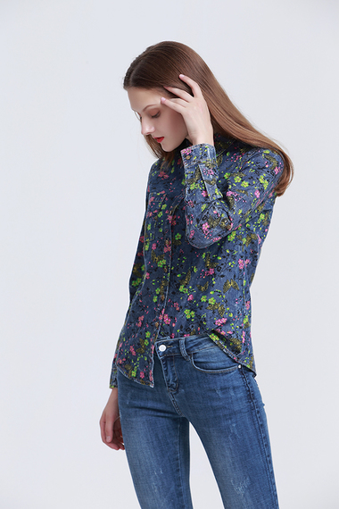 Фото товара 9468, джинсовая рубашка с цветочным рисунком