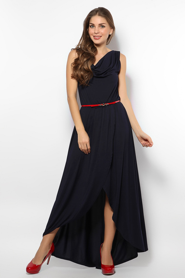 Детали одежды: пояс на резинке, асимметричный подол, вырез горловины "водопад"